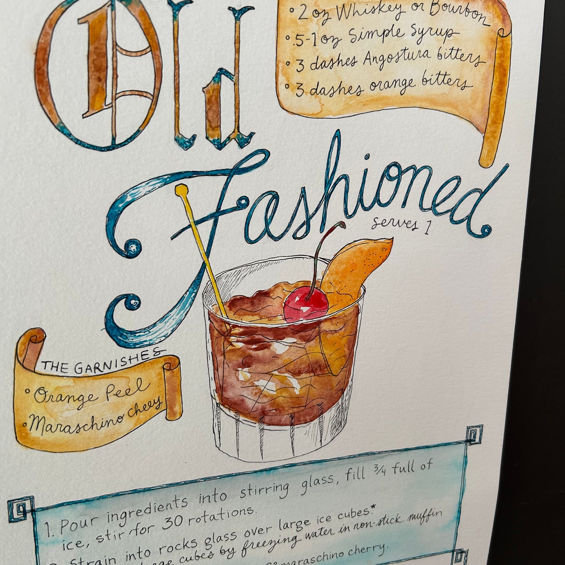 This is an original watercolor painting of a Whiskey Sour on 300lb 9"x12" cold press watercolor paper.