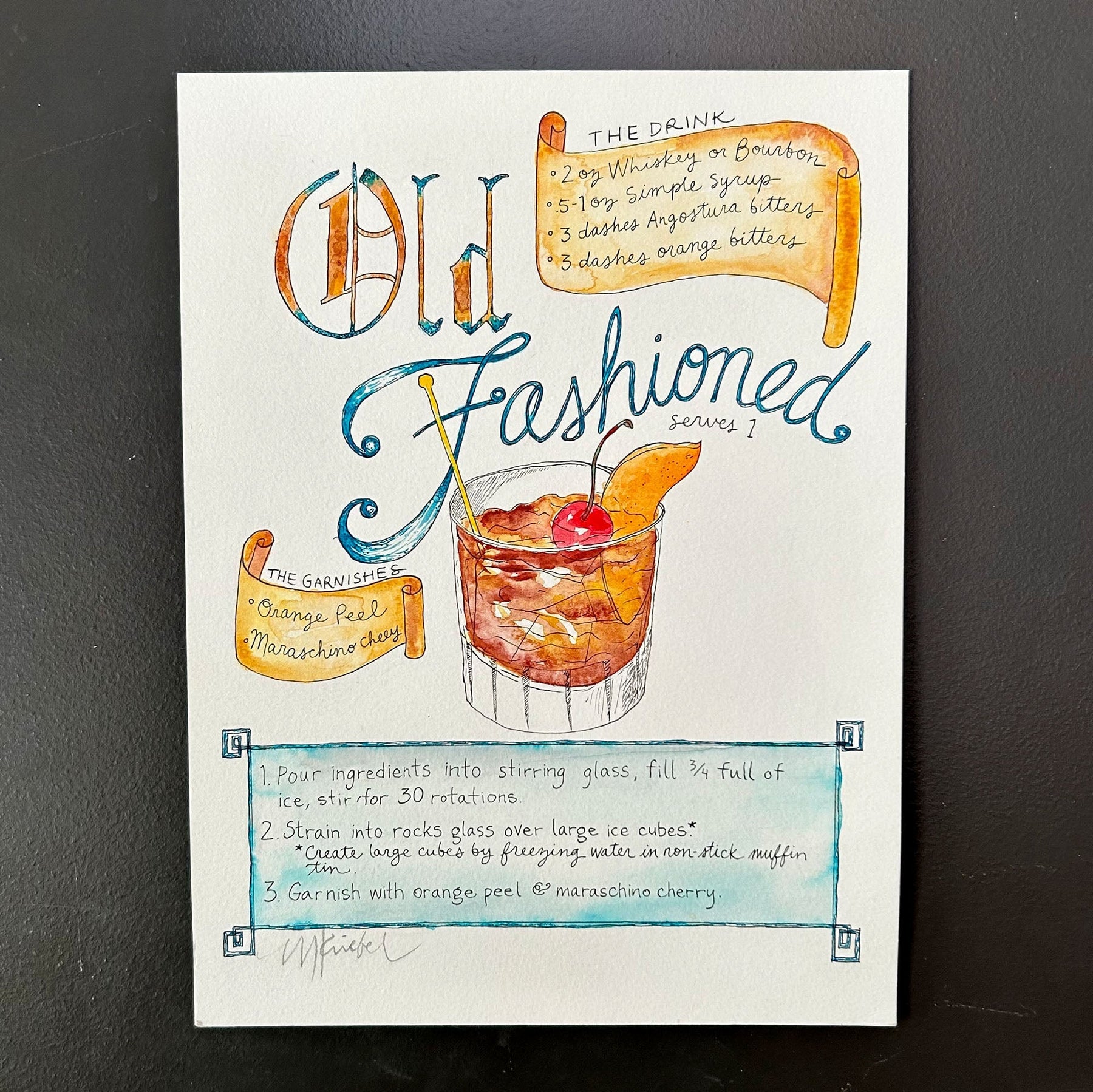 This original watercolor painting of a Manhattan in a coupe glass with a cherry is on 300lb 9"x12" cold press watercolor paper.