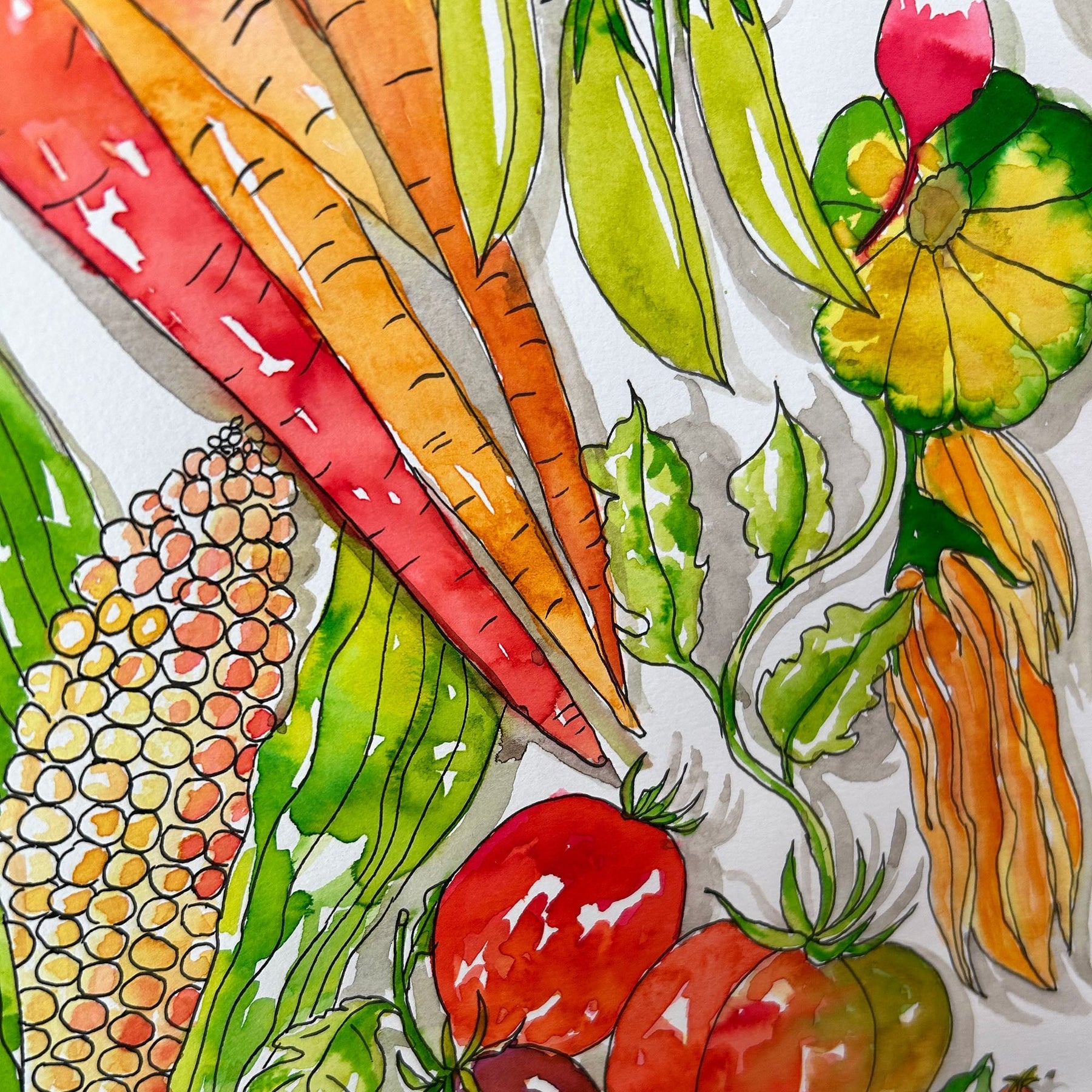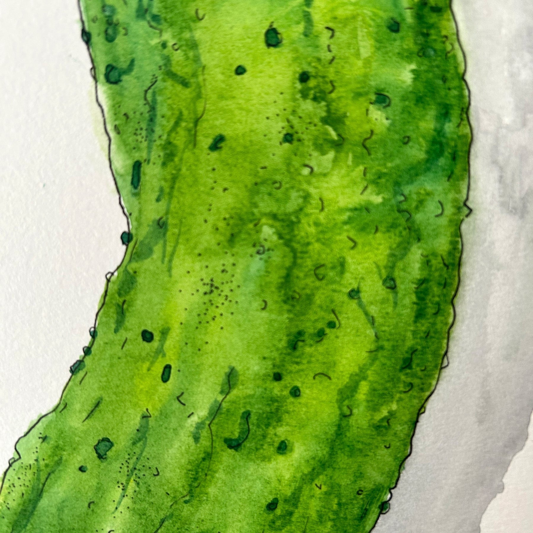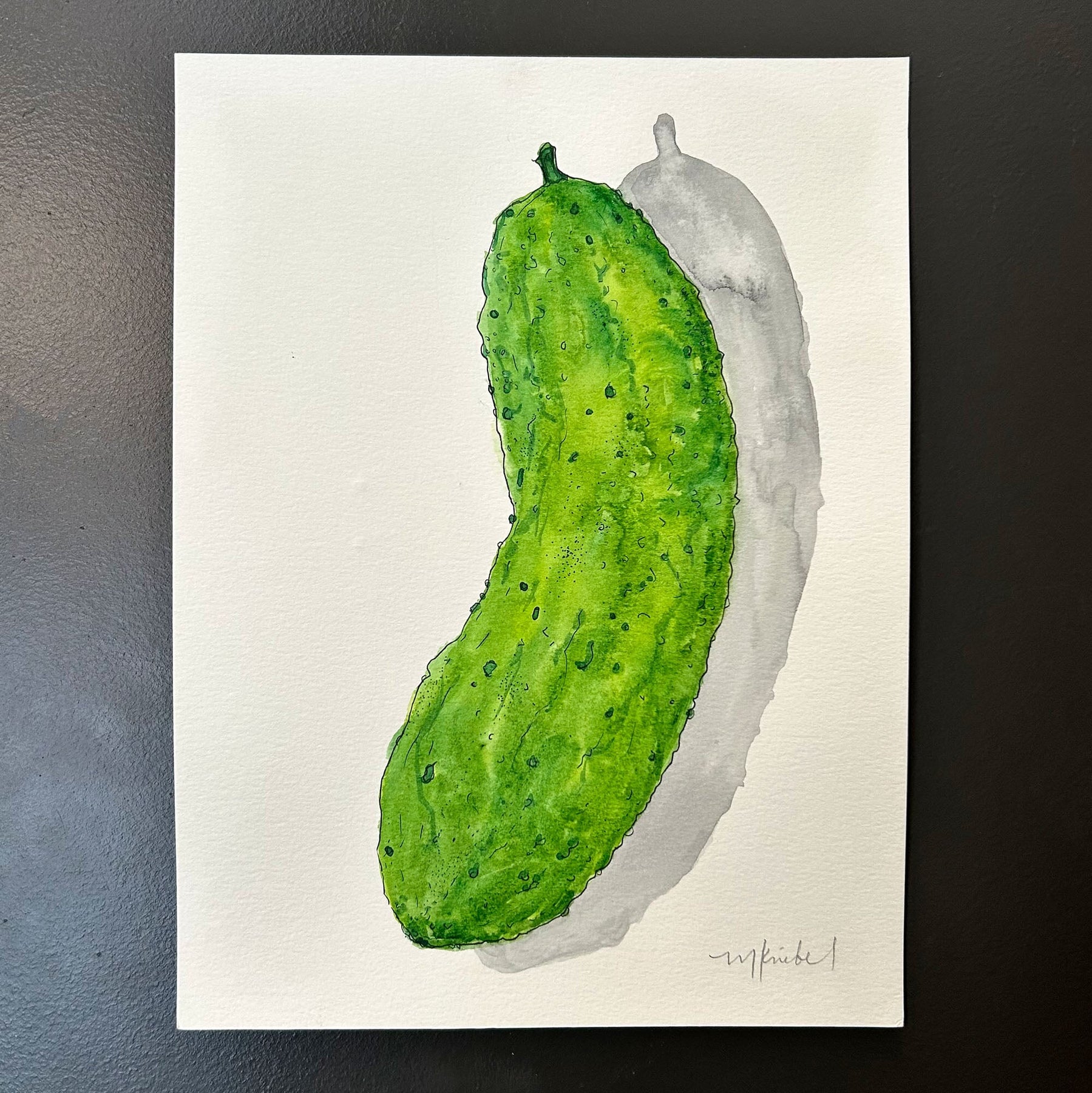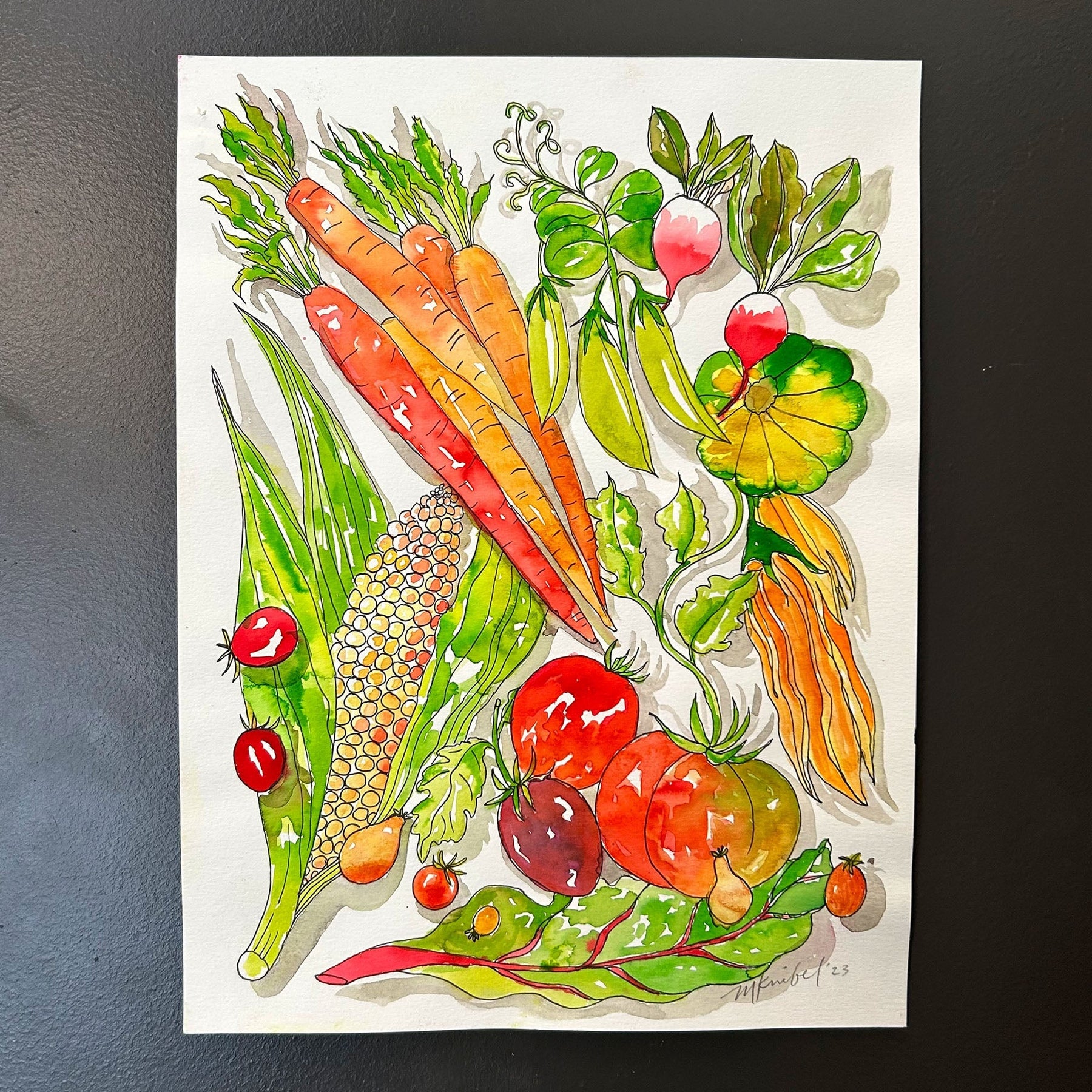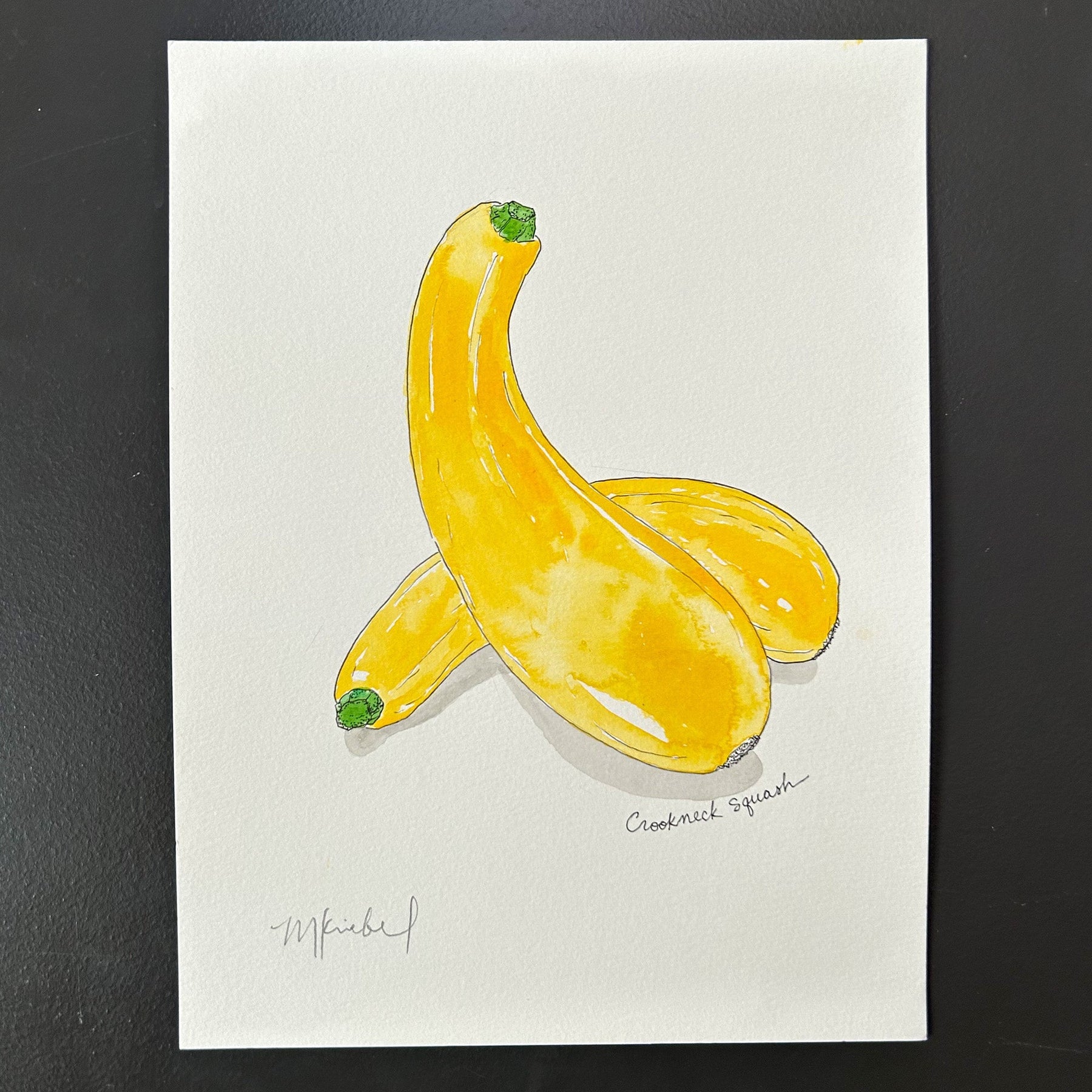 This is an original watercolor painting of zucchini on 300lb 9"x12" cold press watercolor paper.